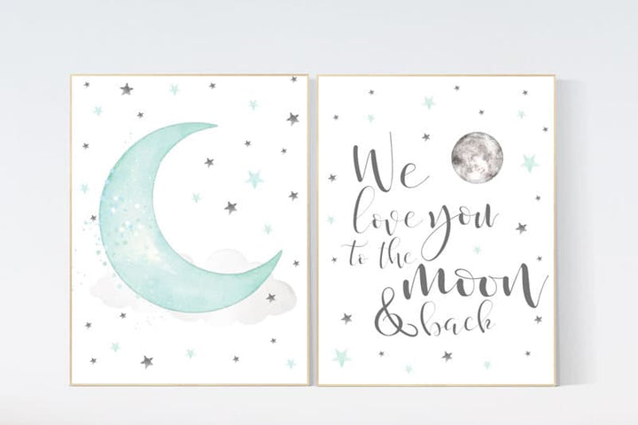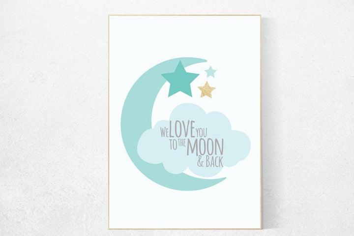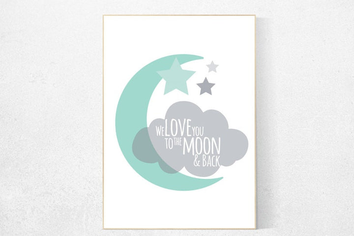 We love you to the moon and back, Mint nursery decor, nursery decor neutral, moon and star nursery nursery decor boy teal, nursery wall art