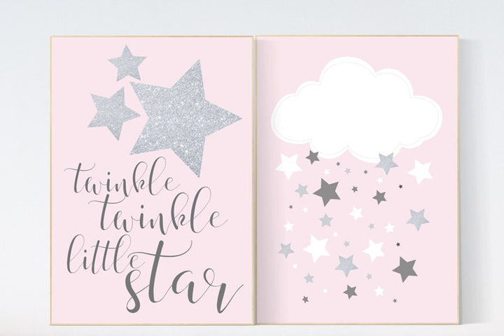We love you more than all the stars, pink gray nursery decor, baby girl nursery decor, pink silver, cloud nursery decor, baby room decor,