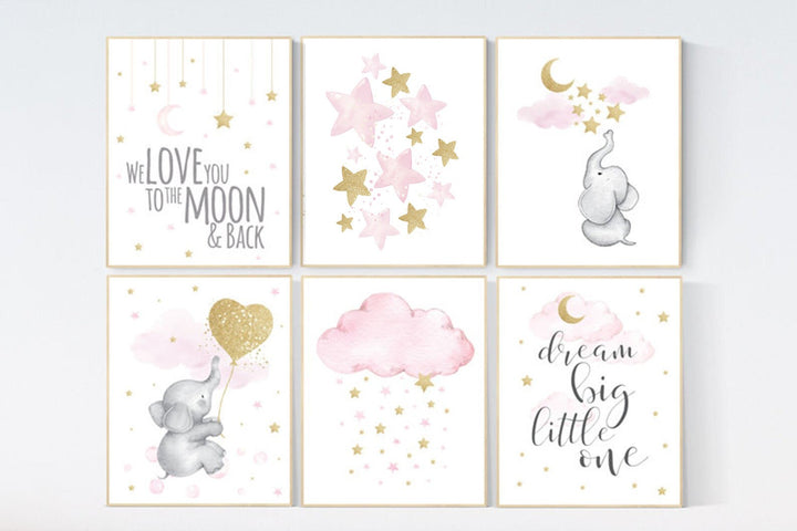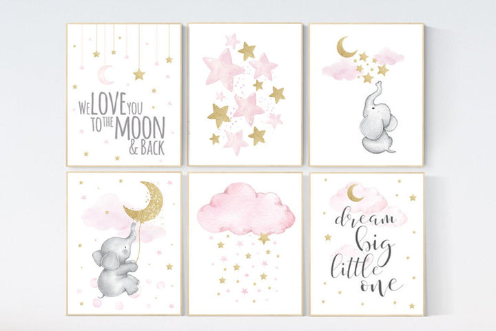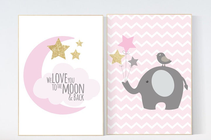 We love you to the moon and back, Elephant nursery decor, pink gold nursery, Baby girl nursery decor, girls room wall art nursery girls room