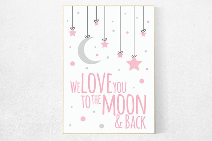 We love you to the moon and back, nursery decor, moon print, pink nursery, new baby gift, baby girl, nursery decor girl, girls nursery room