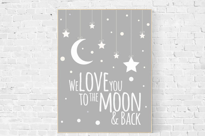 We love you to the moon and back, nursery decor, moon print, nursery wall art, new baby gift, baby room decor, baby room art, gray nursery