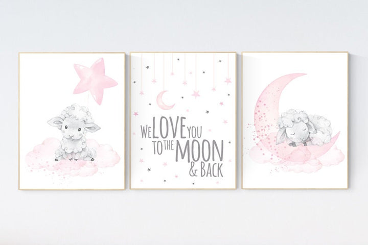 We love you to the moon and back, Nursery decor girl, Sheep nursery decor, nursery decor lambs, , nursery wall art sheep, moon and cloud