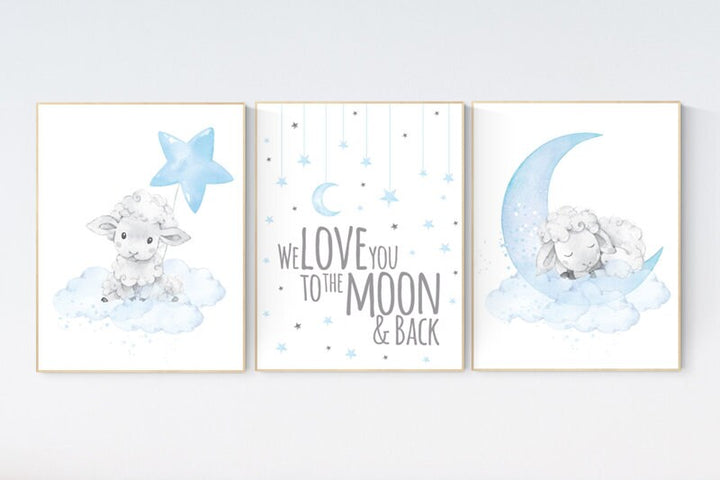 We love you to the moon and back , Nursery decor boy, nursery decor lambs, Sheep nursery decor, nursery wall art sheep, moon and cloud, boy