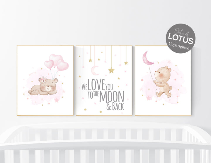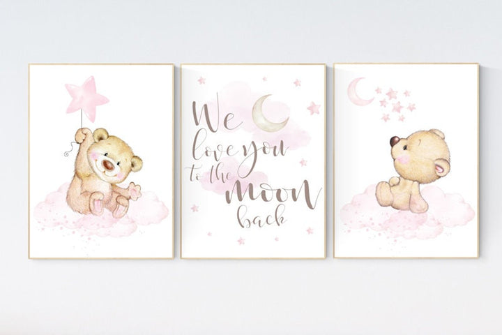 We love you to the moon and back, Bear nursery decor for girls, nursery decor girl, girl nursery decor, nursery wall art girl, teddy bear