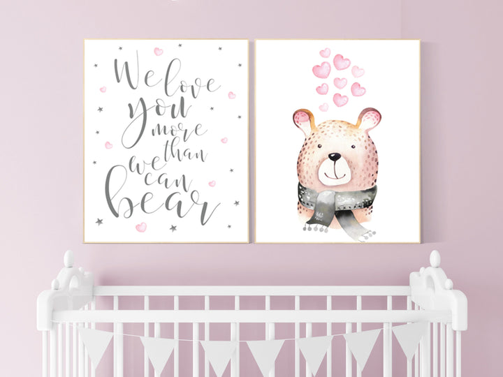 We love you more than we can bear, nursery decor bear, bear nursery print, i love you more than i can bear, animals, nursery quote print