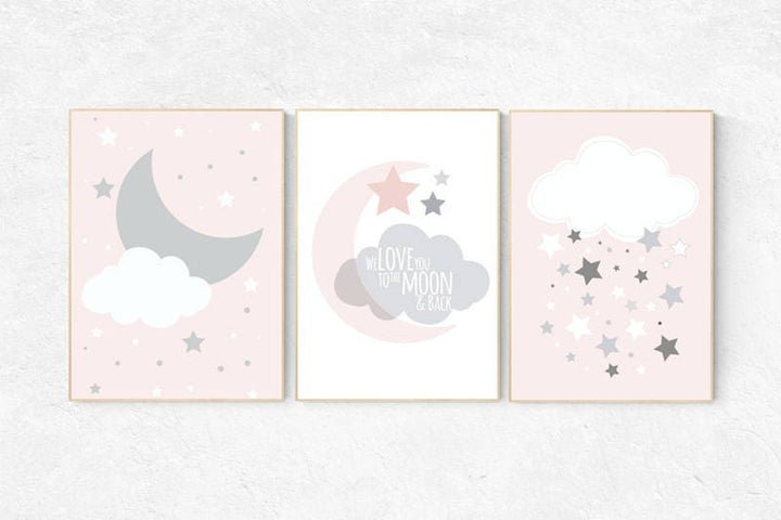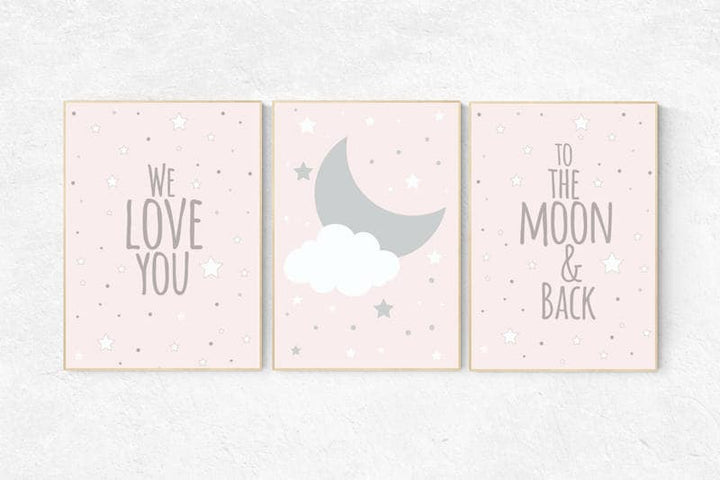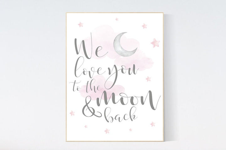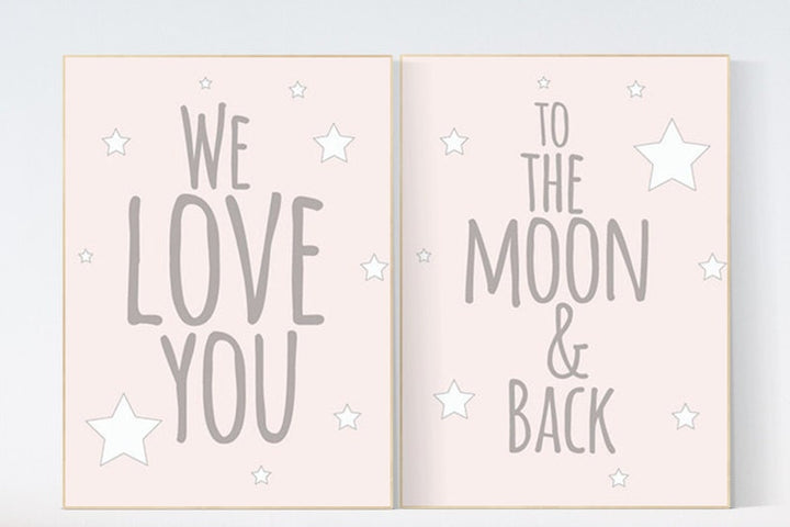 We love you to the moon and back, nursery decor, nursery wall art, pale pink nursery prints, nursery decor girl, baby girl nursery art
