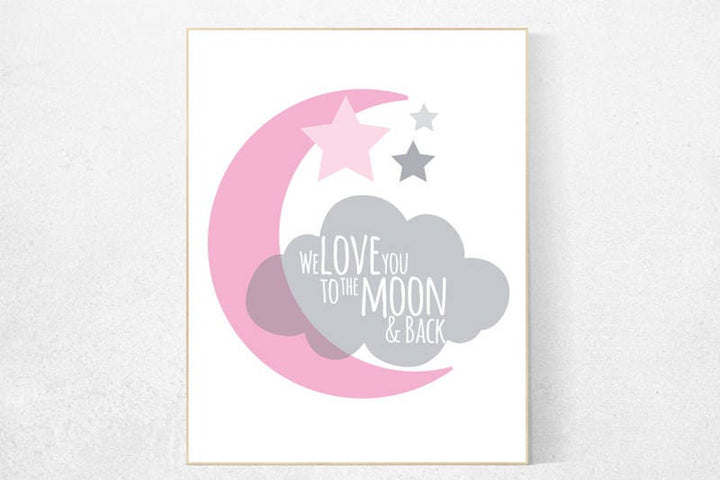 We love you to the moon and back, pink nursery decor, moon print, nursery wall art, new baby gift, baby room decor, baby room art, pink