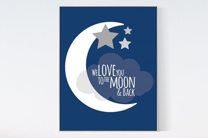 We love you to the moon and back, nursery decor, navy nursery decor, moon nursery, nursery wall art, baby room decor, toddler, new baby gift