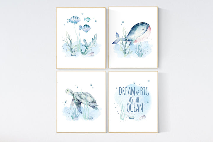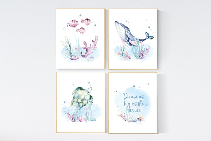 Whale nursery, Under the sea nursery, gender neutral, Ocean themed nursery, Sea nursery decor, Nautical nursery print set, ocean nursery