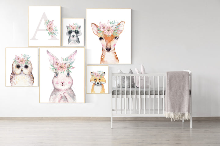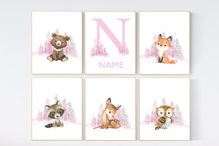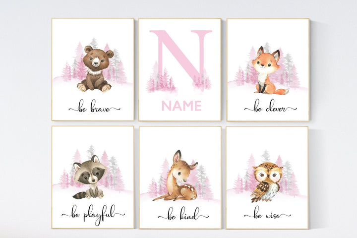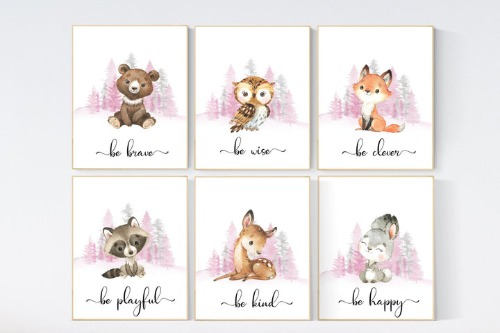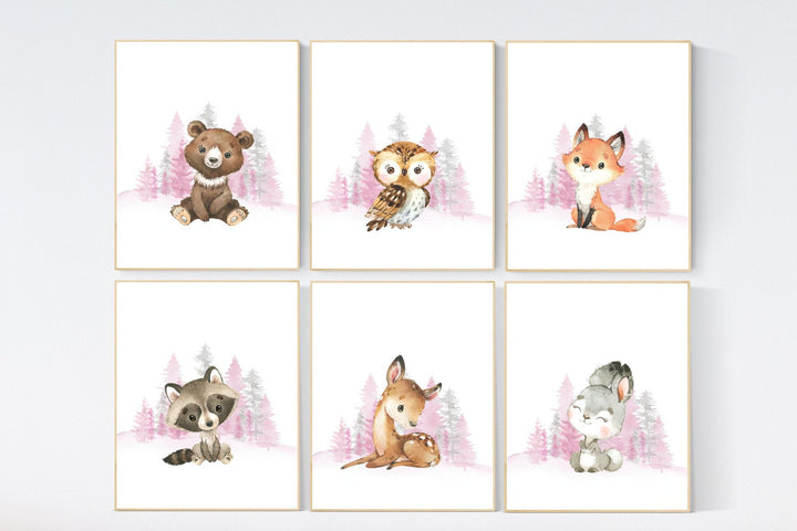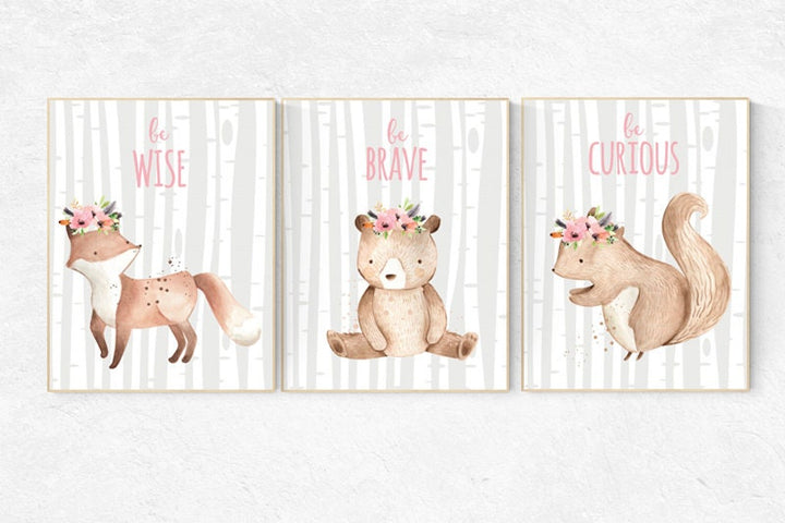 Woodland nursery decor girl, animal nursery decor for girl, animal prints for nursery, animal wall art print, girls nursery prints