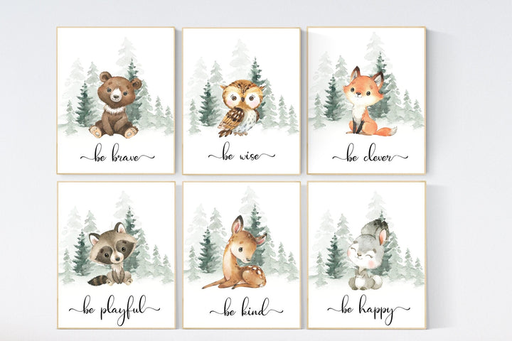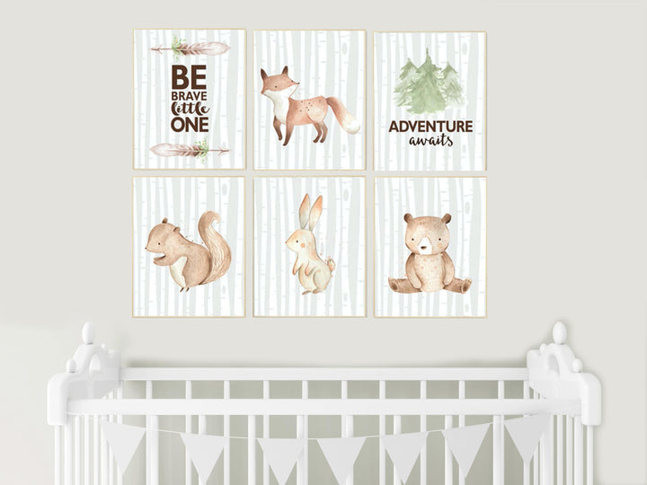 Woodland animals Nursery decor, nursery wall art woodland, nursery decor neutral, gender neutral, animal nursery, be brave little one