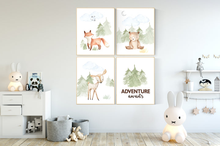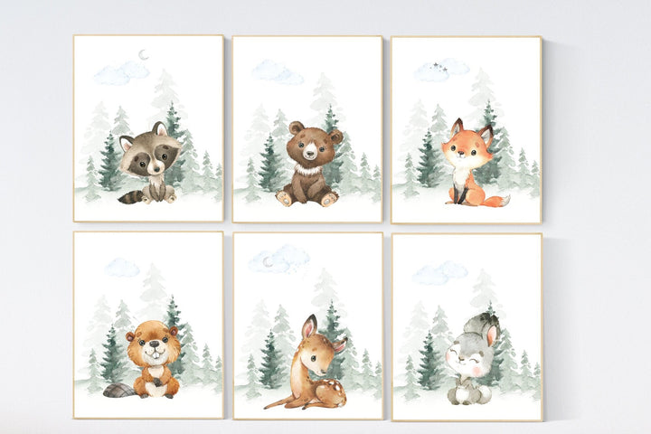 Woodland animals nursery decor, gender neutral nursery, Woodland Nursery Wall Art, Woodland animal prints, forest animals, safari animals