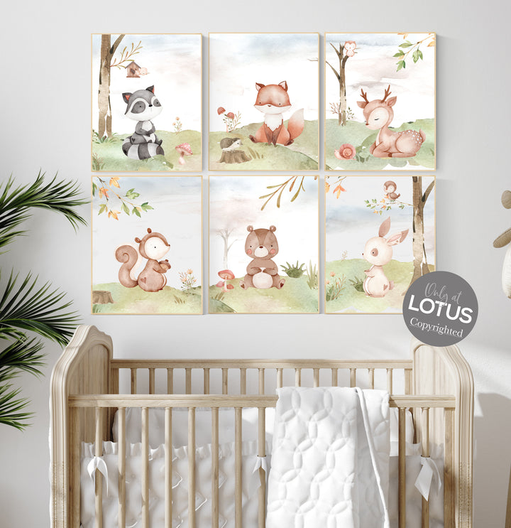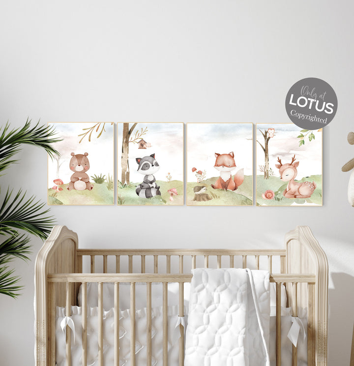 Woodland animals Nursery decor, nursery wall art woodland, nursery decor neutral, gender neutral