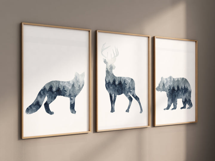 Woodland animals, Nursery decor woodland, navy nursery, animal prints, forest theme, forest nursery decor, animal silhouettes, tree nursery