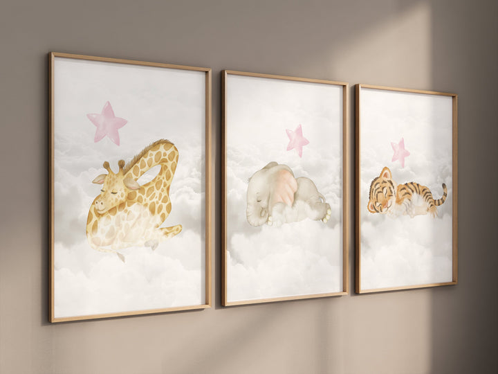 Woodland Animals, Sleeping on Clouds, Woodland Nursery Decor, pink nursery, Animal Nursery wall art, baby girl nursery, girl nursery