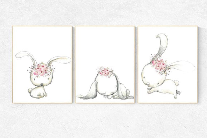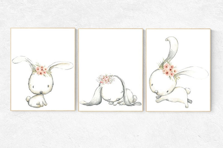 Bunny print nursery, Nursery decor girl bunny, bunny print set, pink and gray nursery, rabbit nursery decor, girl nursery, bunny art