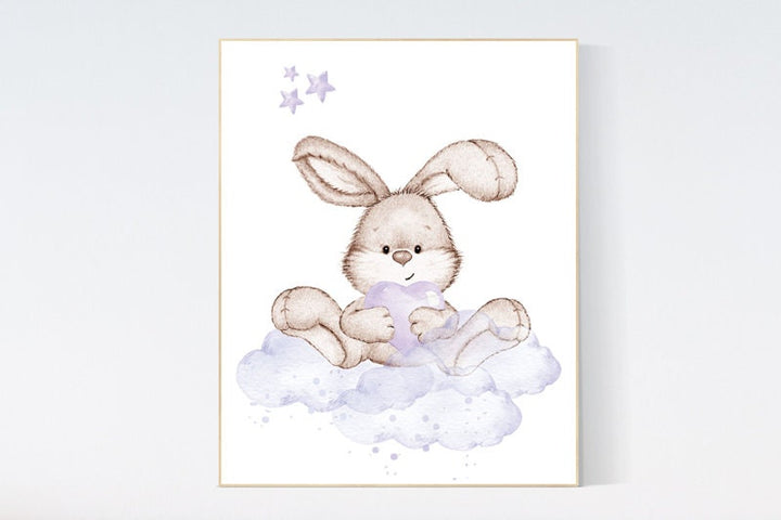 Bunny nursery, purple nursery, lilac nursery, girl nursery, Girl bedroom art, girls room decor, rabbit nursery, bunny print, lavender