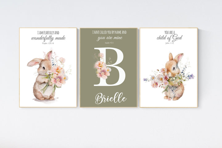 Bunny nursery print, Bunny Floral Watercolor Prints, Nursery wall art girl bunny, bunny nursery decor, sage green nursery, bunny nursery