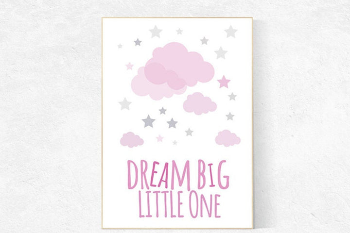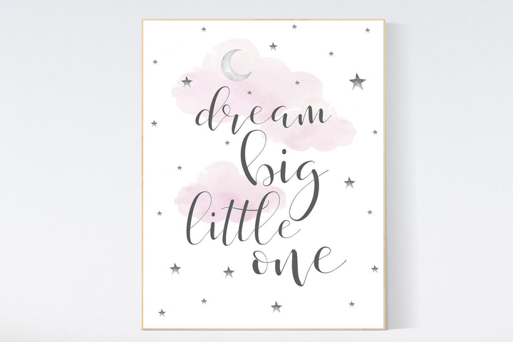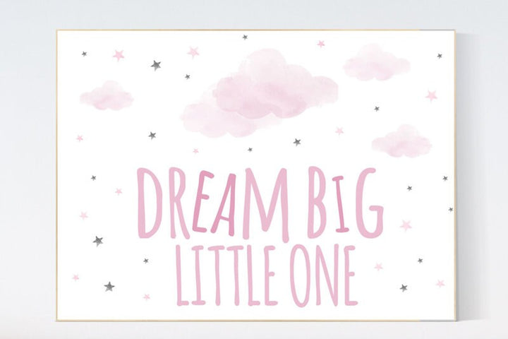 Dream Big Little one, pink and gray nursery decor, nursery decor girls, cloud nursery decor, baby girl nursery decor, pink nursery decor