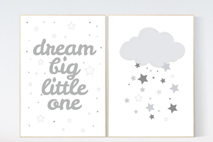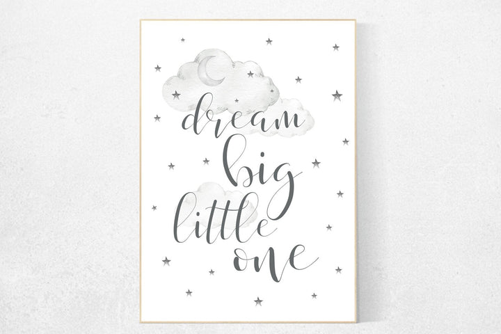 Dream big little one, Nursery Wall Art, nursery decor, gender neutral baby, babyshower grey gray nursery decor, new baby gift nursery prints