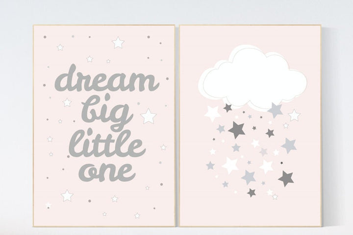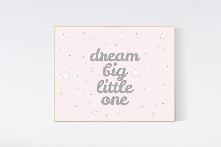 Dream big little one, nursery wall art, pink nursery decor, nursery decor baby girl, stars nursery decor, nursery prints, nursery decor