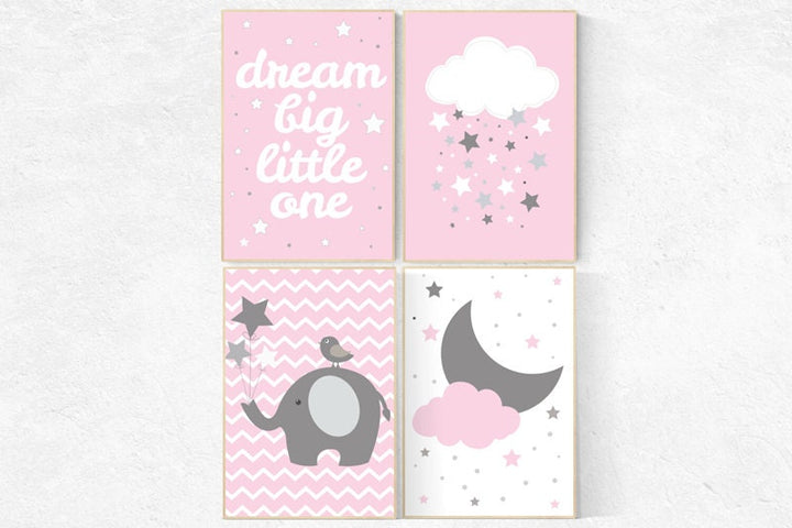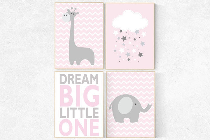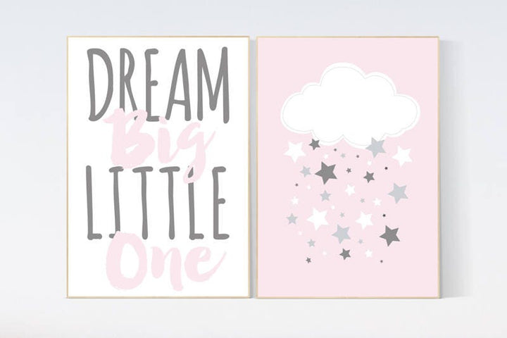 Dream Big Little One, Pink Gray Nursery Set, Girl Nursery Decor, Nursery Print, Baby Girl Pink Nursery Art, Toddler Girl Bedroom Art