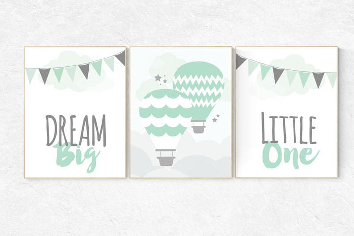 Dream Big Little One, gender neutral nursery, mint grey, hot air balloon Nursery, Nursery Decor, mint gray, gender neutral baby shower