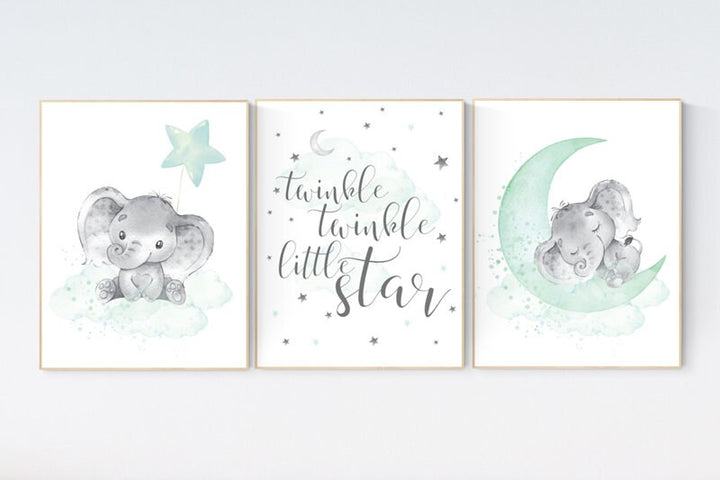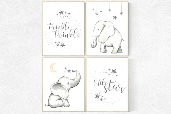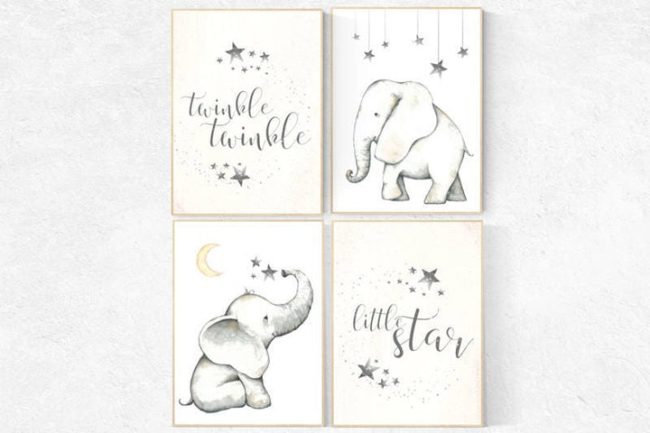 Elephant decor for nursery, Nursery decor neutral, Twinkle Twinkle Little Star, nursery prints elephant, elephant nursery, kids room, animal