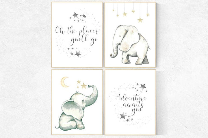 Elephant decor for nursery, Nursery decor neutral, oh the places you'll go, nursery prints elephant, elephant nursery, kids room, adventure