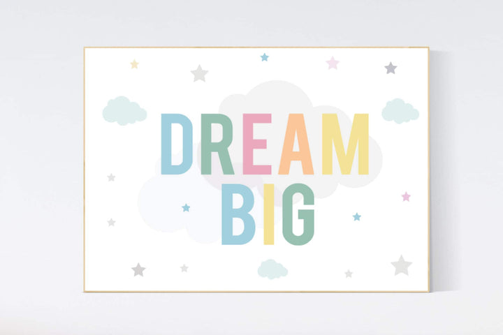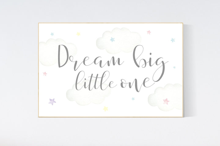 Dream Big Little one, pastel colors, gender neutral nursery decor, baby room decor, cloud nursery decor, dream big nursery, large prints