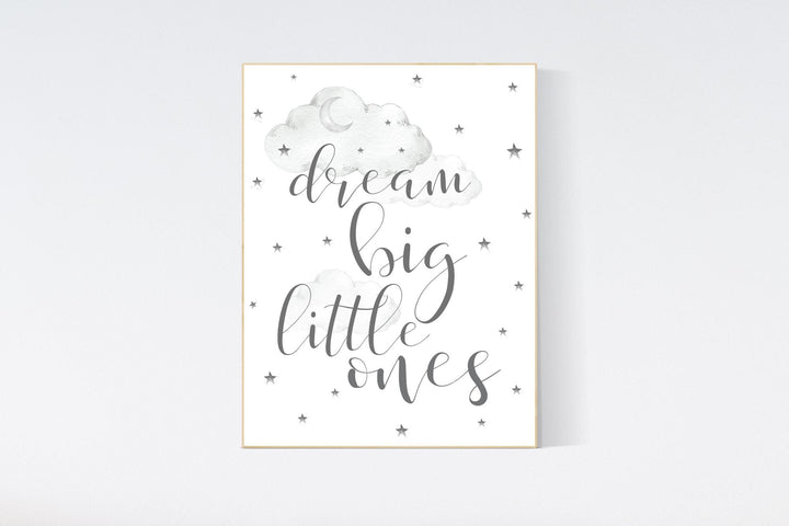 Dream big little one, Nursery Wall Art, nursery decor, gender neutral nursery, grey, gray nursery decor, kids room, twin nursery decor