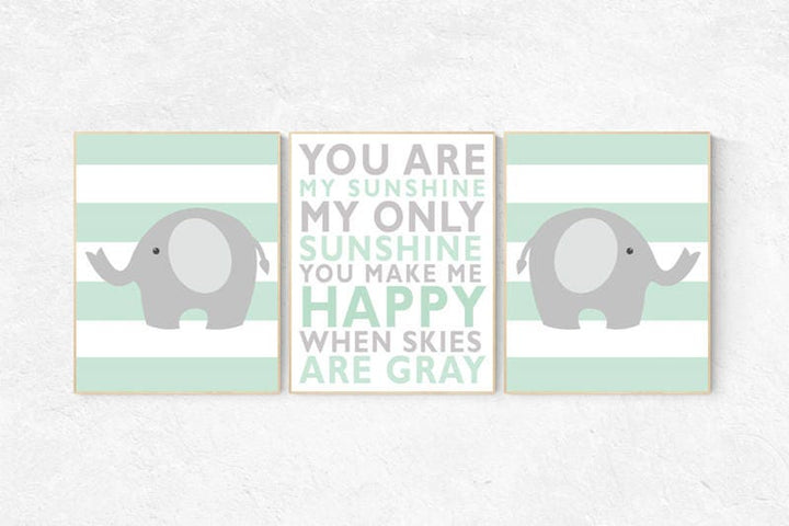 Elephant nursery elephant, Mint nursery decor, You are my sunshine my only sunshine, mint gray, mint green nursery, aqua, turquoise, teal