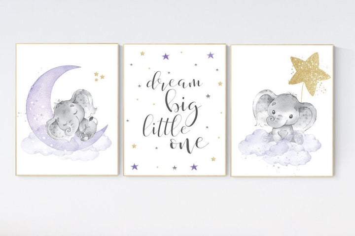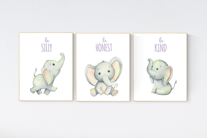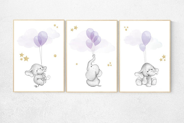 Elephant nursery decor, Nursery decor girl purple, nursery decor elephant girl, lavender, animal nursery, elephant prints