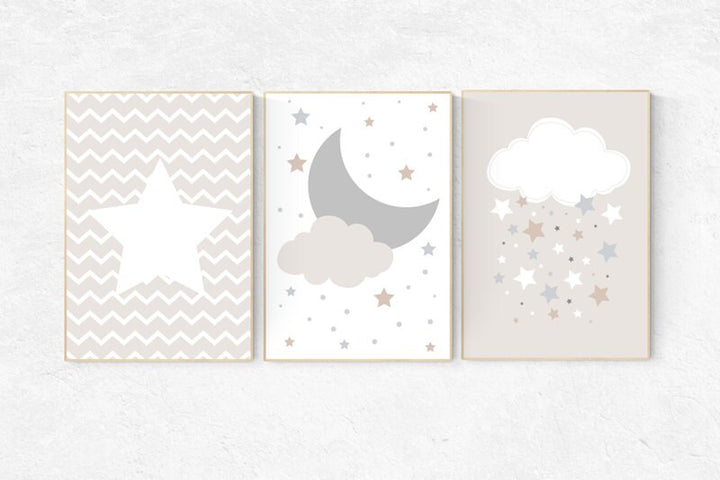 Gender neutral nursery, beige gold, Neutral nursery decor, Nursery decor girl, nursery decor boy, gold nursery wall art, cloud, star, moon