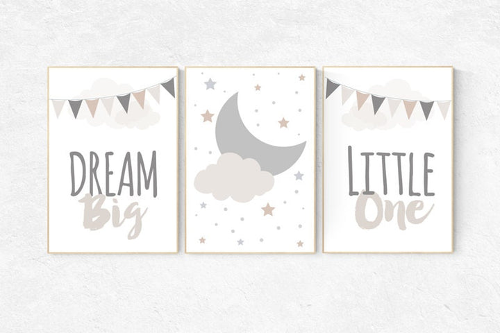 Gender neutral nursery, Dream big little one, beige and cream, cloud Nursery, Nursery Decor, Gray Beige gender neutral baby shower, cloud