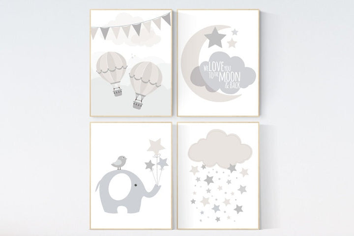 Gender neutral nursery, beige and cream, hot air balloon Nursery, elephant nursery, Nursery Decor, Gray Beige gender neutral baby shower
