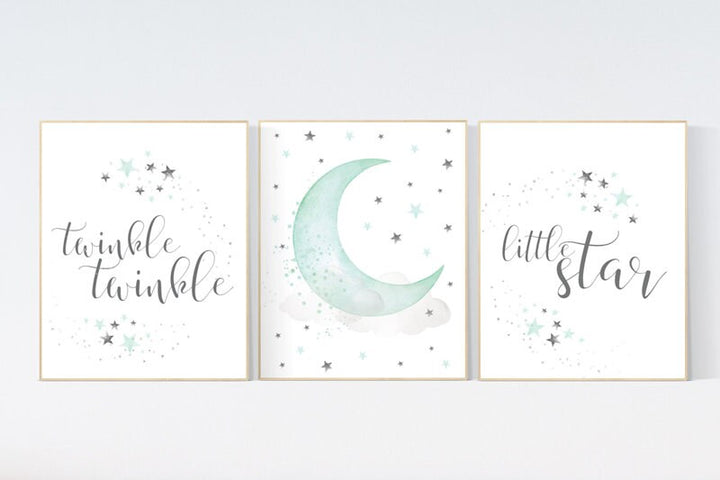 Gender neutral nursery, mint nursery, Twinkle twinkle little star, moon nursery, cloud and stars, Nursery decor neutral, nursery wall decor