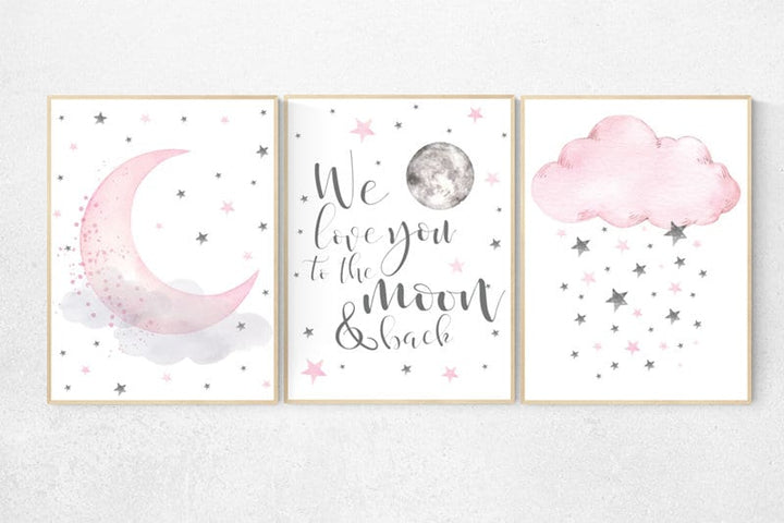 Girls room decor, Nursery decor girl pink and gray, nursery decor girl pink, we love you to the moon and back, cloud and stars, moon nursery