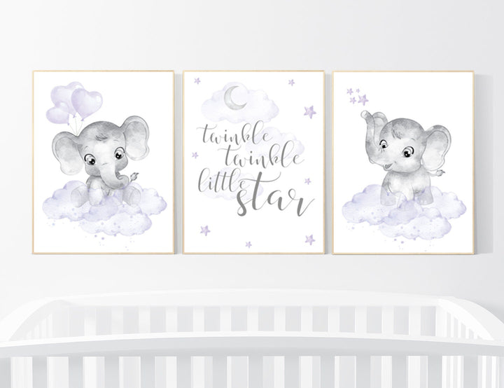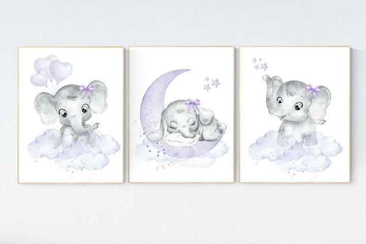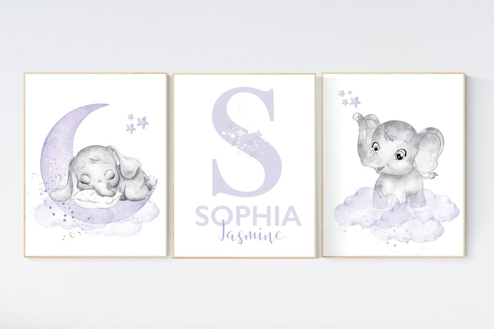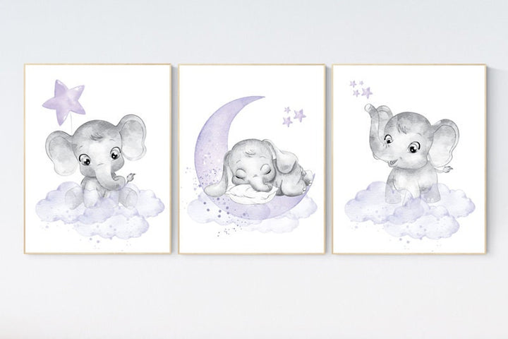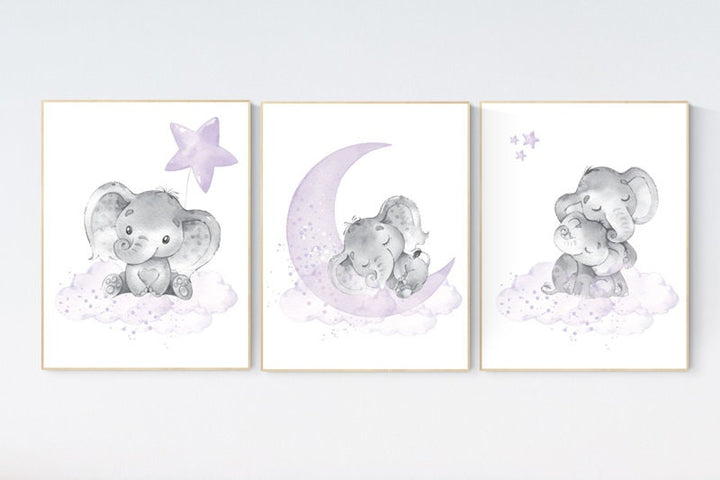 Girls room decor lavender, Nursery decor girl purple, nursery decor elephant girl, moon and stars, nursery decor girl lavender, lilac