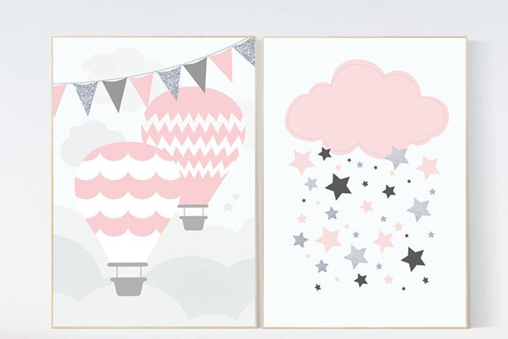 Hot Air Balloon nursery, baby girl nursery, set of 2, pink nursery, nursery wall art, baby girl gift, baby girl baby shower, nursery decor
