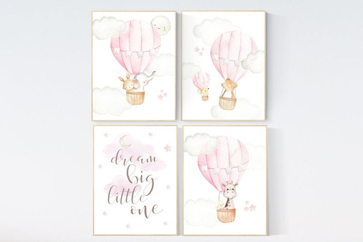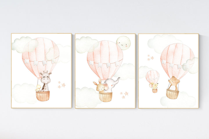 Hot air balloon nursery girls, Nursery decor girl, hot air balloon art for nursery, pink nursery prints, girls room wall decor, girl nursery