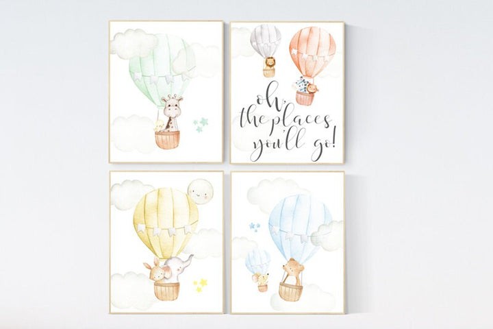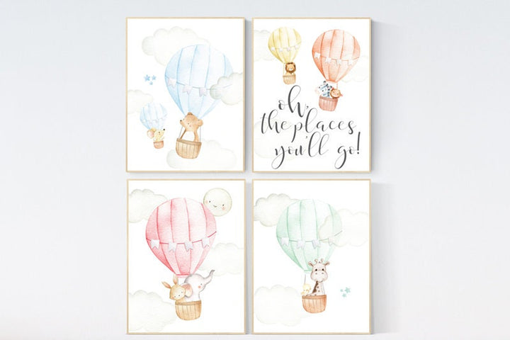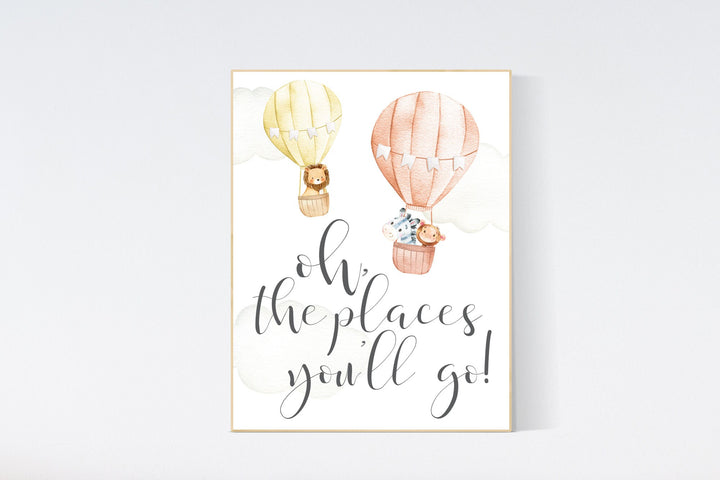 Hot Air Balloon Nursery decor, Oh the places you'll go Nursery Art Print, gender neutrel, nursery decor girl, nursery decor, playroom decor