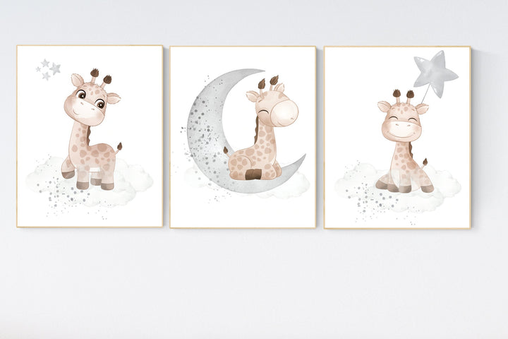 Grey nursery wall decor, gender neutral, giraffe nursery wall decor, neutral nursery, baby room decor, gray nursery, unisex, twins