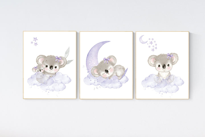 Koala nursery, girl nursery, purple nursery art, girl nursery decor, purple nursery decor, koala bear, baby girl room decor, animal prints