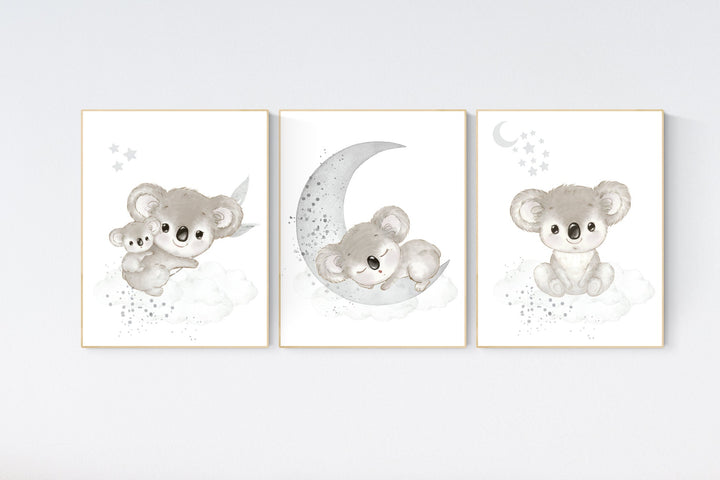 Koala nursery decor, gender neutral, koala bear prints, nursery wall art, nursery prints animals, nursery decor boy, nursery decor girl