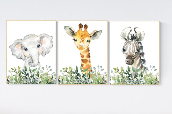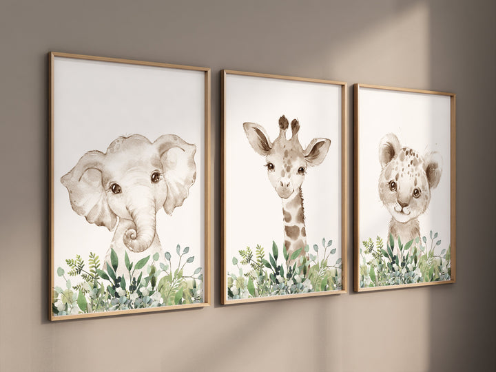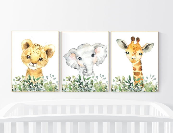 Jungle Animals, Safari Animal Nursery Prints, safari animals, safari nursery, Greenery, gender neutral nursery, Boy Nursery Wall Art