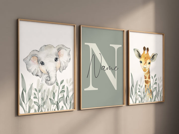 Jungle Animals, Safari Animal Nursery Wall Art Set, gender neutral, personalized Jungle Print , Elephant, Lion, Giraffe, Zebra, Monkey