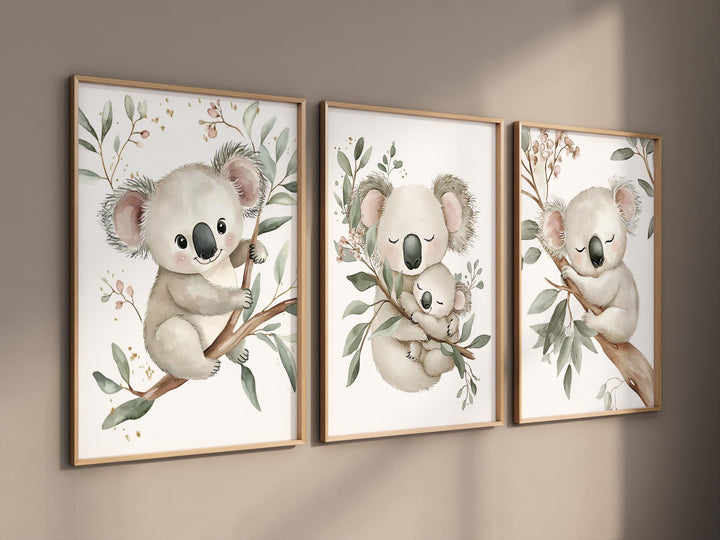 Koala Nursery Wall Art, Baby Koala Print Set, Woodland Animal Prints, Neutral Nursery Decor, Baby Shower Gift, Eucalyptus Wall Art