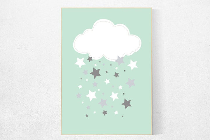 Mint nursery decor, cloud nursery mint nursery, star nursery decor, nursery wall art, nursery prints, baby room decor, mint baby shower