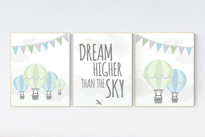 Mint blue nursery wall art, hot air balloon Nursery, mint and blue, baby room wall art, gender neutral, dream higher, gender neutral